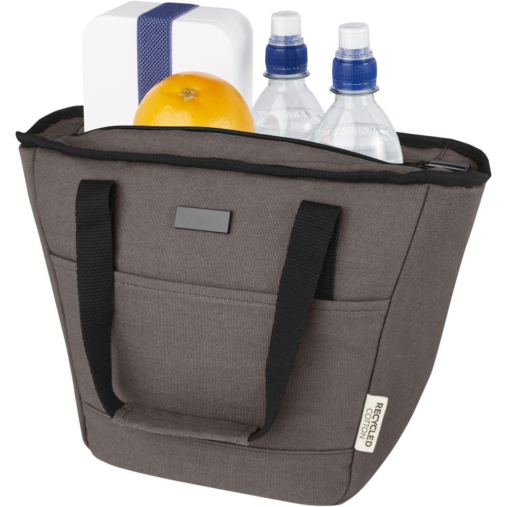 A rendkívül tartós és fenntartható anyagokból, GRS újrahasznosított vászonból és GRS RPET béléssel készült Joey hűtőtáska élelmiszer-minőségi előírásoknak megfelelő, PEVA béléssel ellátott, szigetelt fő rekesszel, nyitott elülső zsebbel és két megerősített hevederes fogóval rendelkezik a kényelmes szállítás érdekében. Emblémázás: Szitanyomás