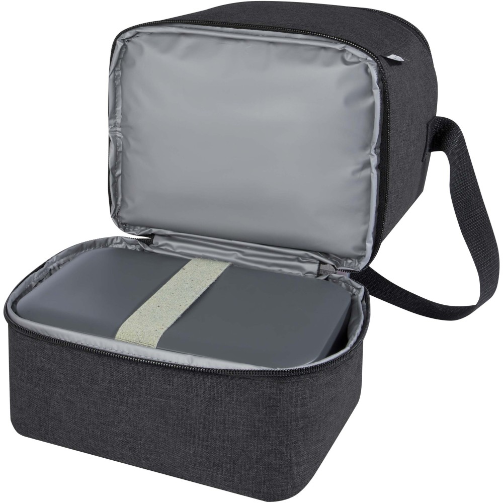 A Tundra újrahasznosított hűtőtáska bőséges tárolóhelyet biztosít minden finomságnak. Felső szigetelt cipzáras rekesszel és alsó szigetelt cipzáros rekesszel rendelkezik. Az alsó rekesz tökéletes a bento doboznak, az elülső ferde zseb pedig ideális az arcmaszk vagy más apró tárgyak tárolására. A hűtő PEVA bélése és külseje újrahasznosított PET műanyagból készül. Emblémázás: Szitanyomás