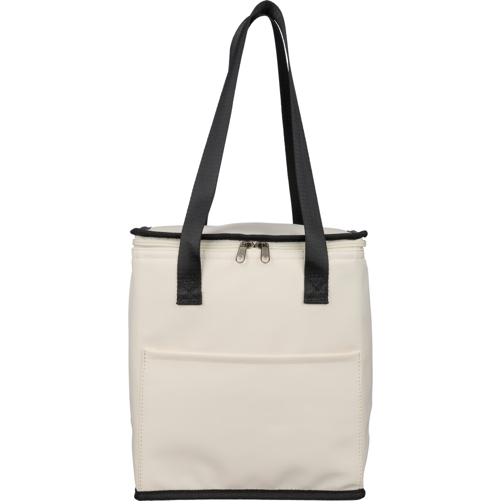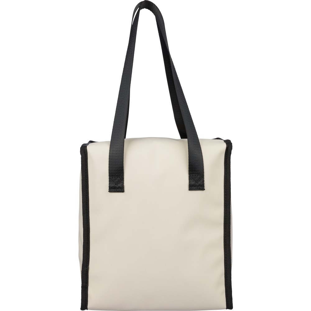 Újrahasznosított PU anyagból készült hűtőtáska 9 literes űrtartalommal, 210D újrahasznosított poliészter béléssel. 2,5 × 66 cm méretű hosszú fülekkel és elülső tárolózsebbel rendelkezik. A belső címkén újrahasznosított alapanyagra utaló logó található. Emblémázás: Szitanyomás