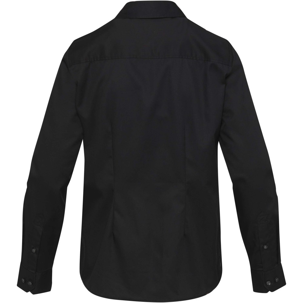 A Citrine hosszúujjú női twill blúz puha szerkezetét nőies könnyedség jellemzi. Prémium minőségű, BCI-tanúsítvánnyal rendelkező pamut twillből készült, sima, finoman fényes textúrája növeli a mindennapi viselhetőségét, miközben támogatja a fenntarthatóbb pamuttermelést. A normál fazon, elöl és hátul dartsokkal formázva, kényelmes viselet mellett előnyös sziluettet kölcsönöz. Nyitott gallérral, modern csavarral tervezett Citrine könnyedén átmenetet biztosít a munkanapok és a hétvégék között, időtálló minőséget hozva minden ruhatárba. 100% BCI pamutból szőtt twill, 185 g/m2. Emblémázás: Hímzés