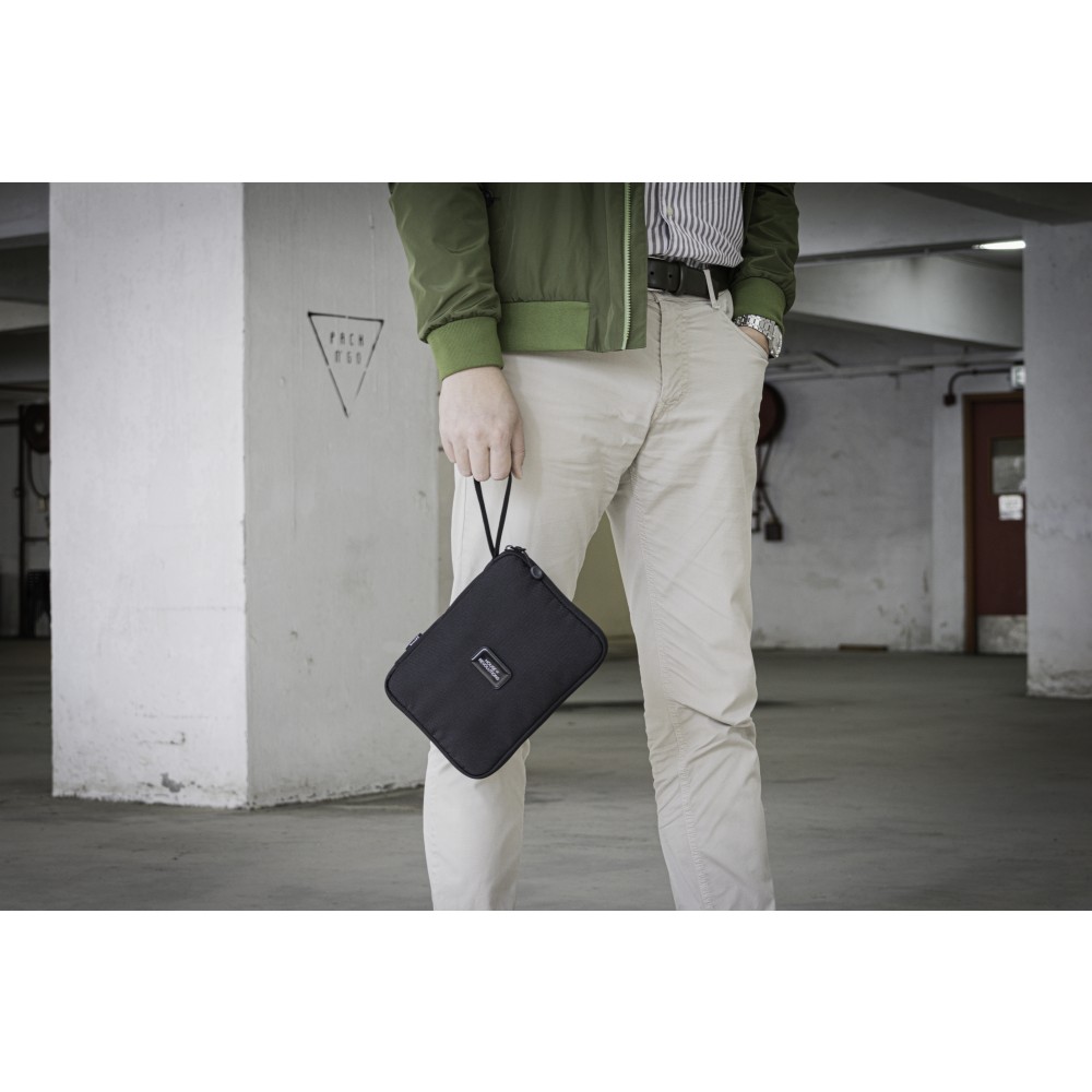 Az újrahasznosított PET-palackokból készült Rover utazótárca ideális céges ajándék az utazóknak. A5-ös mérete kompakt, mégis sokoldalú útitárssá teszi, víz- és szennyeződéstaszító külsővel. A táska egy nagy cipzáras rekesszel, egy főrésszel és egy kibővíthető elülső zsebbel rendelkezik az útlevelek, jegyek, tollak és egyéb fontos dolgok biztonságos tárolására. Könnyű, mégis strapabíró, van egy rekesze, amelybe egy A5-ös notebook, Kindle vagy iPad mini is elfér. Tökéletes utazáshoz, fontos dokumentumok tárolására is használható az autóban vagy otthon, mindig útra készen. Emblémázás: