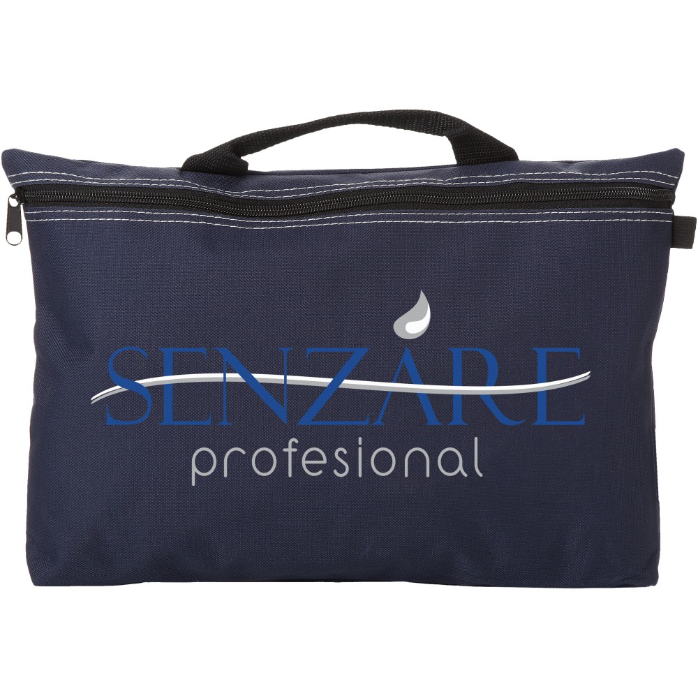 Konferenciatáska erős füllel, cipzárral zárható, tolltartó hurkokkal a táska belsejében és kívül is. Ideális A4-es méretű kiadványokhoz. 600D poliészter. Emblémázás: Szitanyomás
