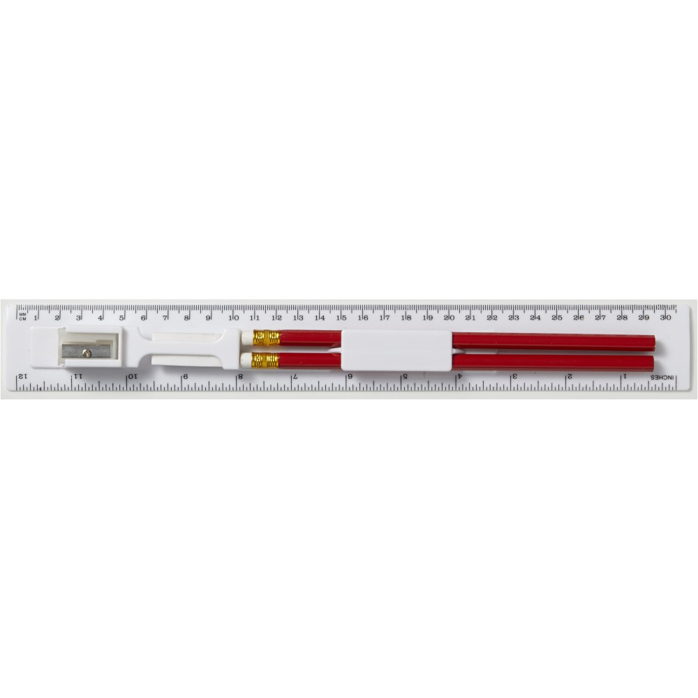 30 cm-es vonalzó és írószerkészlet, fehér