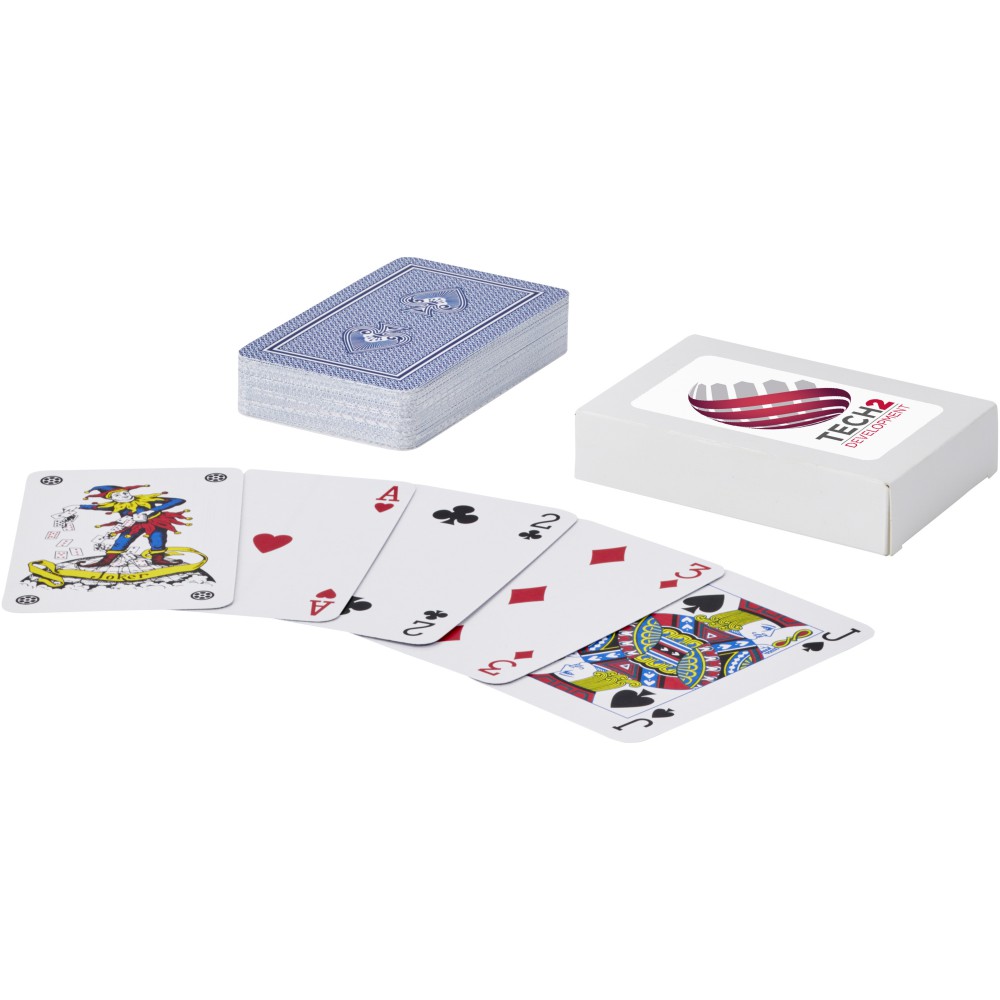 Tanúsítvánnyal rendelkező újrahasznosított papírból készült klasszikus kártyapakli 54 játékkártyával (2 jokerrel). Fenntartható forrásból származó papírdobozban szállítjuk. Emblémázás: Matricázás