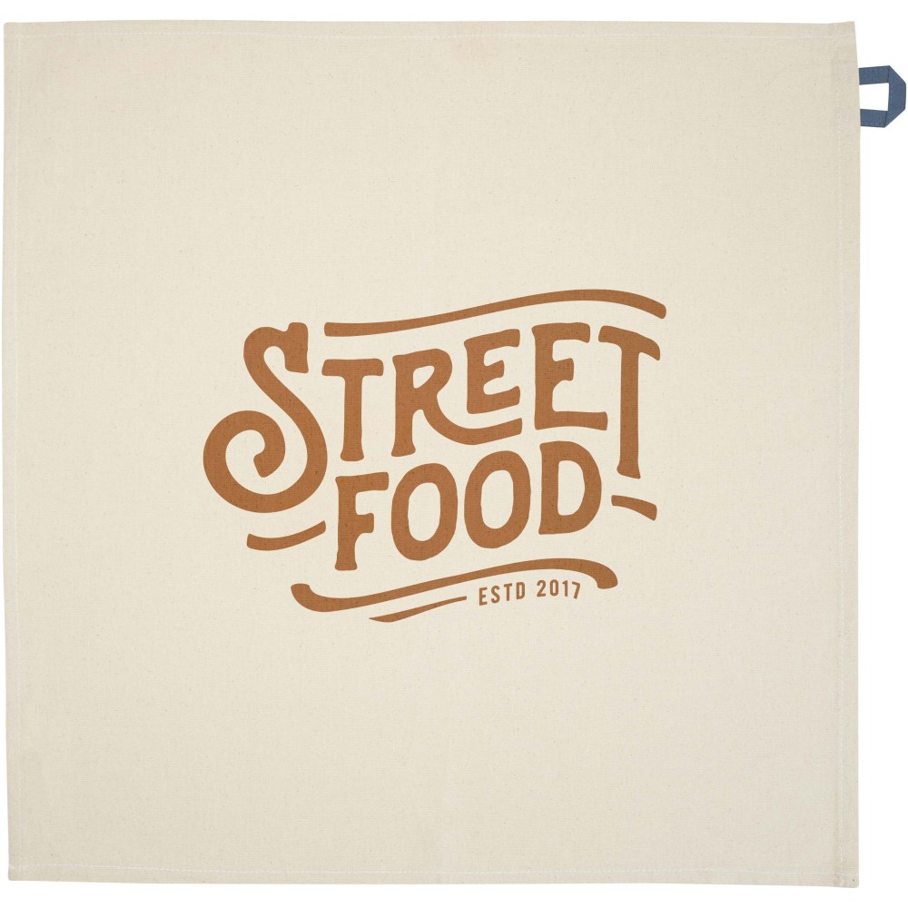 Konyharuha 100% GRS tanúsítvánnyal, 200 g/m2 újrahasznosított pamutból készült, és jellegzetes kontrasztos akasztóval rendelkezik. Mérete: 50 x 50 cm. Emblémázás: Hímzés, Szitanyomás