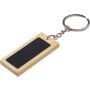 Kulcstartó gumis felületű, rozsdamentes acél gravírozólappal. A gravírozás utáni szín fényes króm. Egyedi csomagolásban, barna kraftpapír tokban. Anyaga: bambusz. Emblémázás: Tamponnyomás