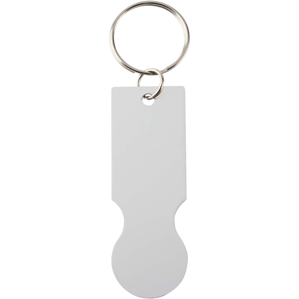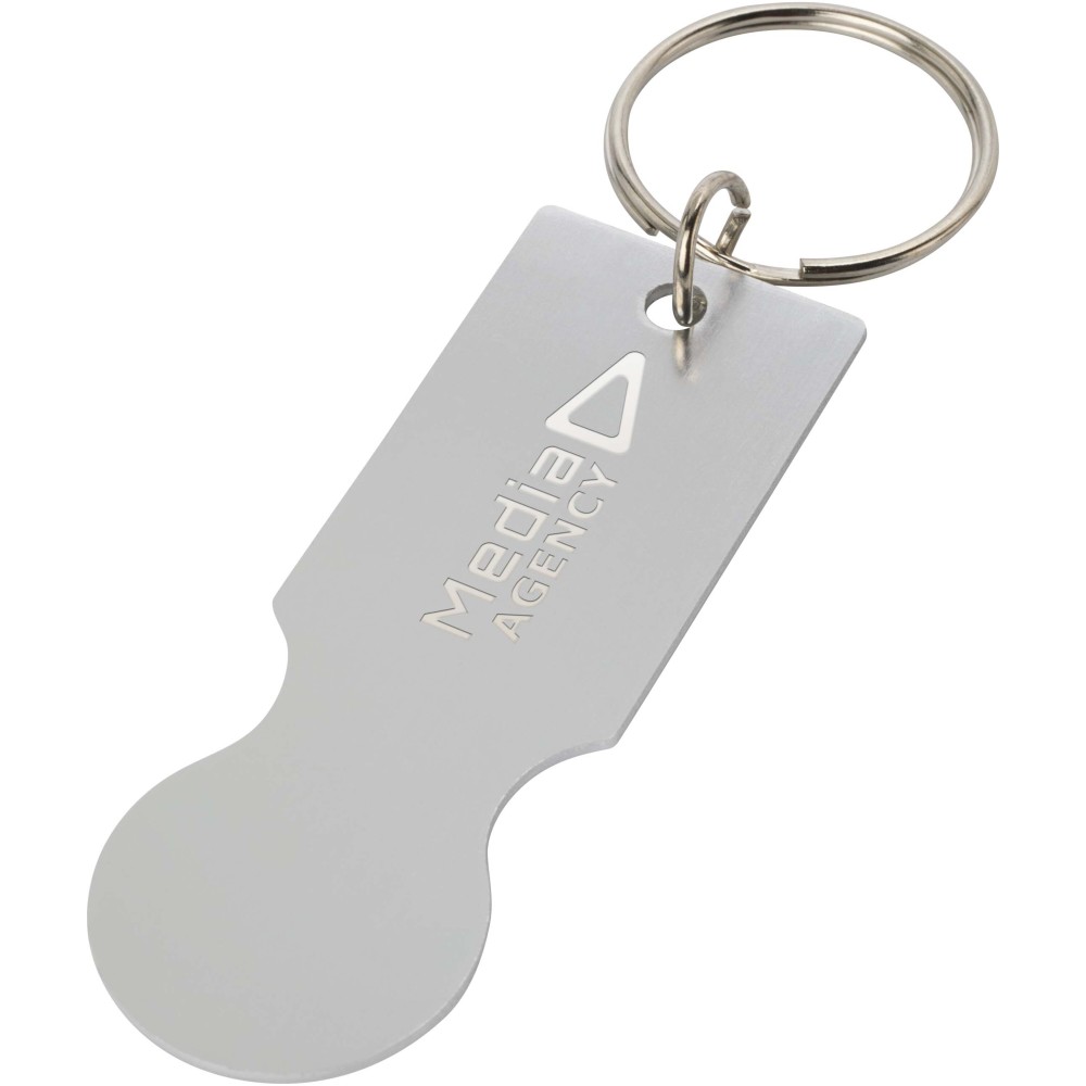 A Rhea fém kulcstartó bevásárlókocsi érmével a legtöbb szupermarket bevásárlókocsijához illeszkedik, lehetővé téve azok kinyitását érme vagy zseton nélkül. Emblémázás: Gravírozás, Tamponnyomás