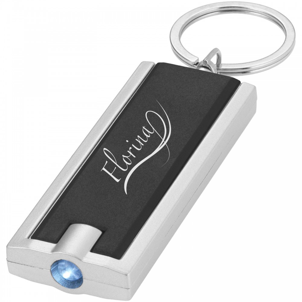 Fehér LED-es kulcstartó. Tartozék elemmel. Fém. Emblémázás: Tamponnyomás, UV nyomtatás