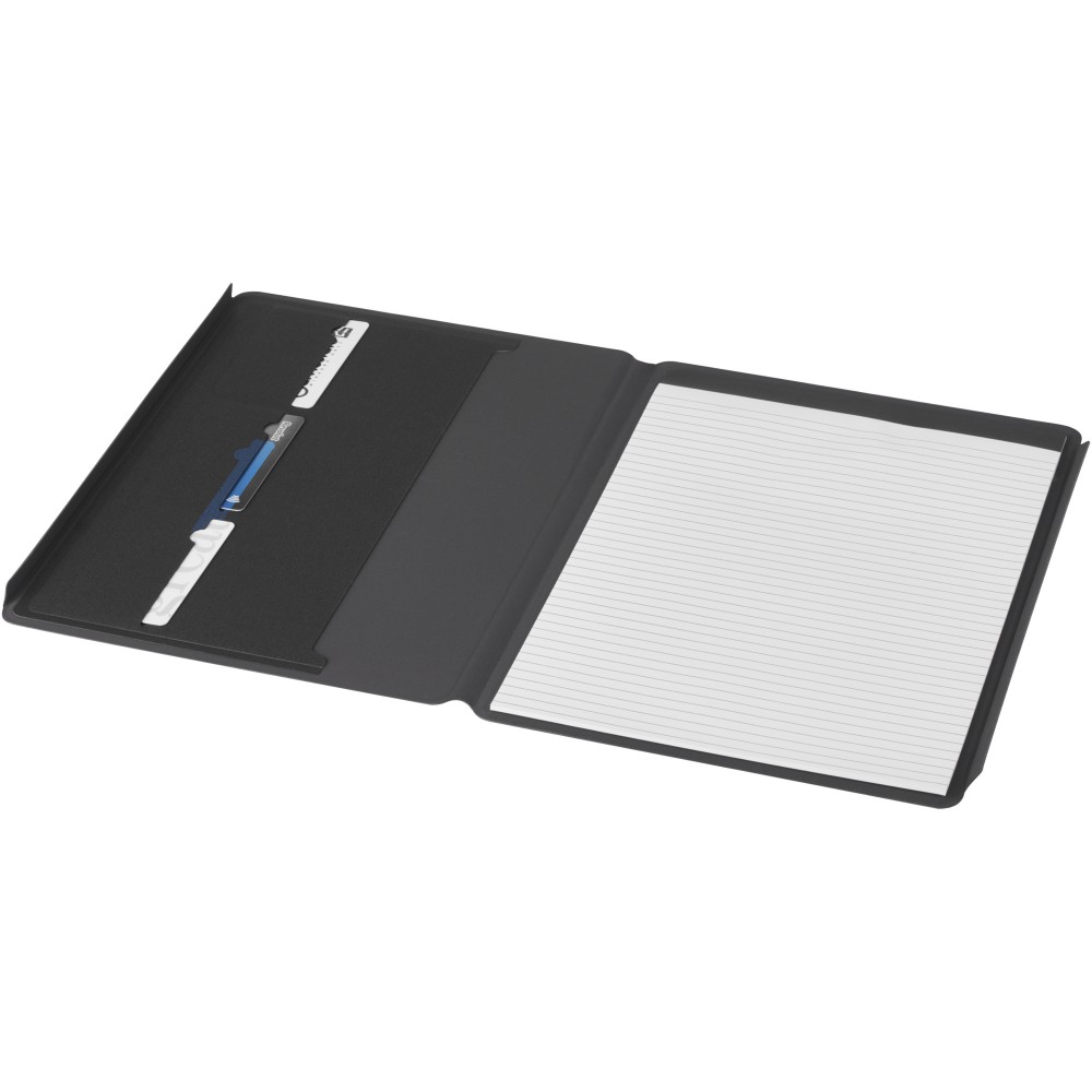Az RCS tanúsítvánnyal rendelkező Kunveno portfólió részben újrahasznosított poliészterből készül, így ez a portfólió fenntarthatóbb választás, mivel segít csökkenteni a szűz nyersanyag felhasználását. Mágneses záródással és 20 fehér, vonalas, fenntartható forrásból származó 80 g/m2 újrahasznosított ívvel. Emblémázás: Gravírozás, Tamponnyomás
