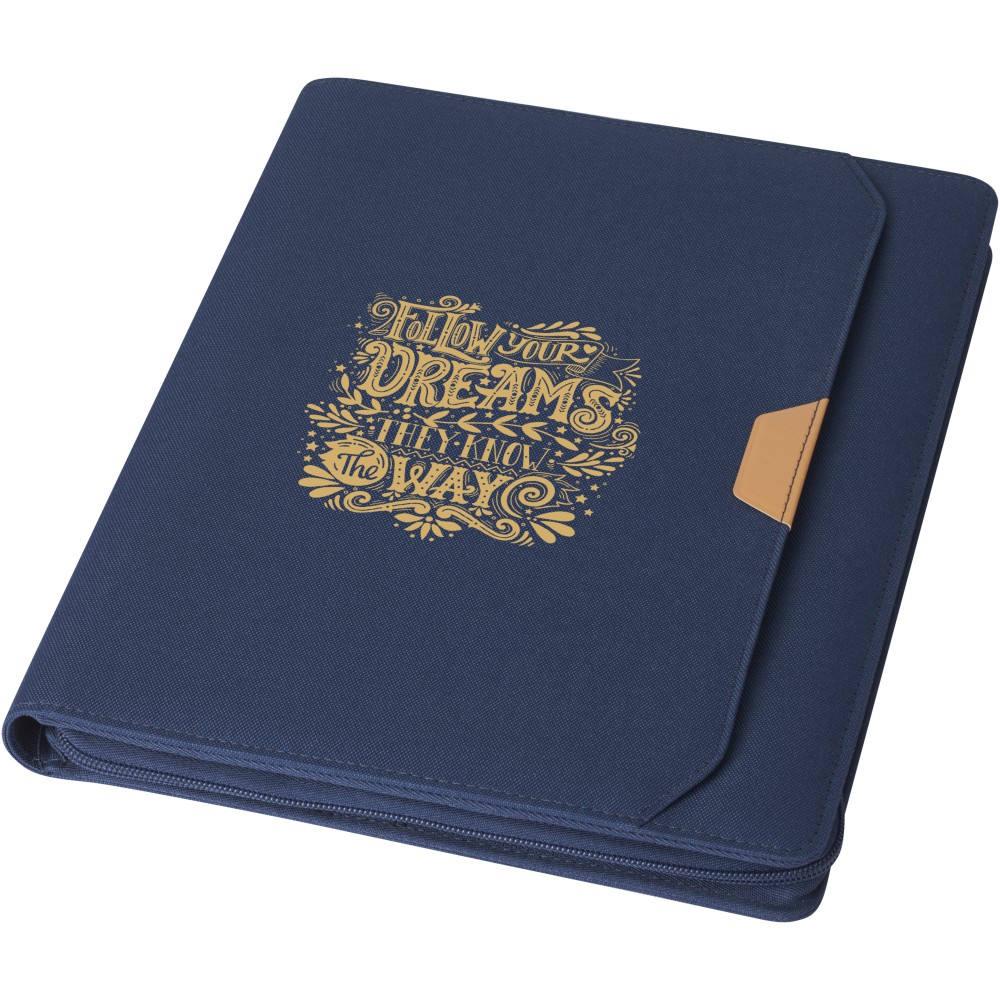 Az RCS tanúsítvánnyal rendelkező Nomumi portfólió részben újrahasznosított poliészterből készül, így ez a portfólió fenntarthatóbb választás, mivel segít csökkenteni az új nyersanyag felhasználást. Cipzáras záródással, tollhurokkal, harmonikazsebbel és 20 fehér vonalas lappal rendelkezik, amelyek 70 g/m2 -es, fenntartható forrásból származó, újrahasznosított papírból készültek. A képeken látható toll és egyéb kiegészítők nem tartoznak a termékhez. Emblémázás: Tamponnyomás