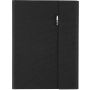 RPET mappa kb. A5-ös méretben, több rekesszel, telefontartóval és mágneses zárással. Tartalmazza a jegyzettömböt 64 vonalas lappal. Egyedileg csomagolva kraft papír tokba. Emblémázás: Szitanyomás