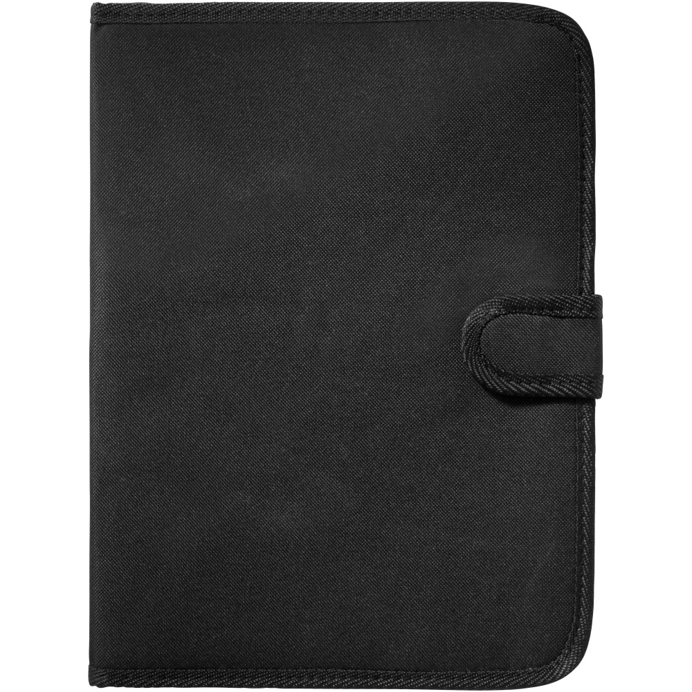 Tépőzáras mappa, tolltartó hurok, irattartó zseb és 20 oldal vonalas jegyzetlap. A tollat és a kiegészítőket nem tartalmazza. 600D poliészter. Emblémázás: Szitanyomás