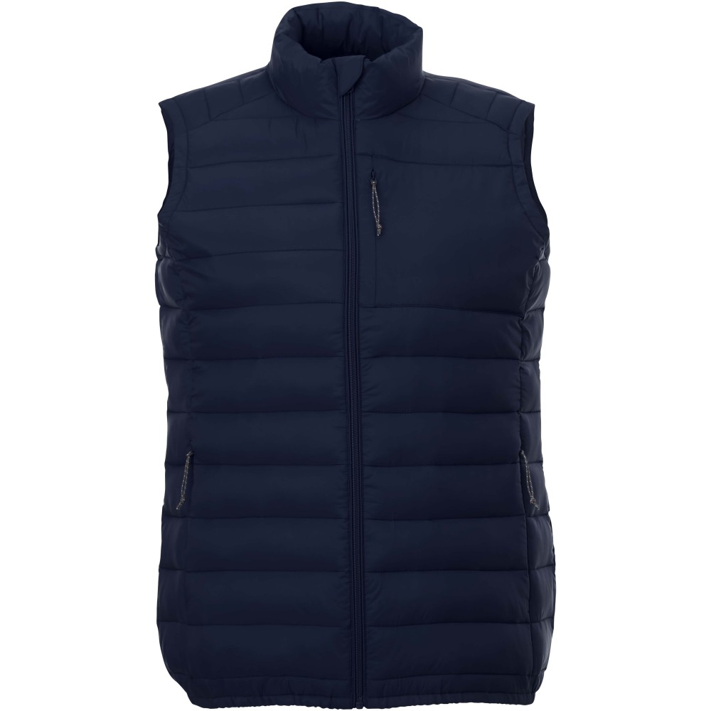 A Pallas női GRS tanúsítvánnyal rendelkező újrahasznosított anyagból készült, szigetelt mellény a stílus és a funkcionalitás tökéletes keveréke. Maradjon védve a hidegtől és a széltől a belső szélvédő segítségével, amely állvédővel rendelkezik. A mellény mellzsebe cipzárral záródik, biztonságos helyet adva a szükséges dolgoknak. A rugalmas szegély stílusos, miközben biztosítja az illeszkedést. 38 g/m2-es matt cire 380T nylon szövetből készült. A mellény karcsú, csinos külsőt biztosít. A töltet és a bélés műpehely, amely meleget biztosít anélkül, hogy a kényelmet feláldozná. Ez a mellény nőies megjelenésű, testhezálló szabásvonallal rendelkezik. Emblémázás: Hímzés