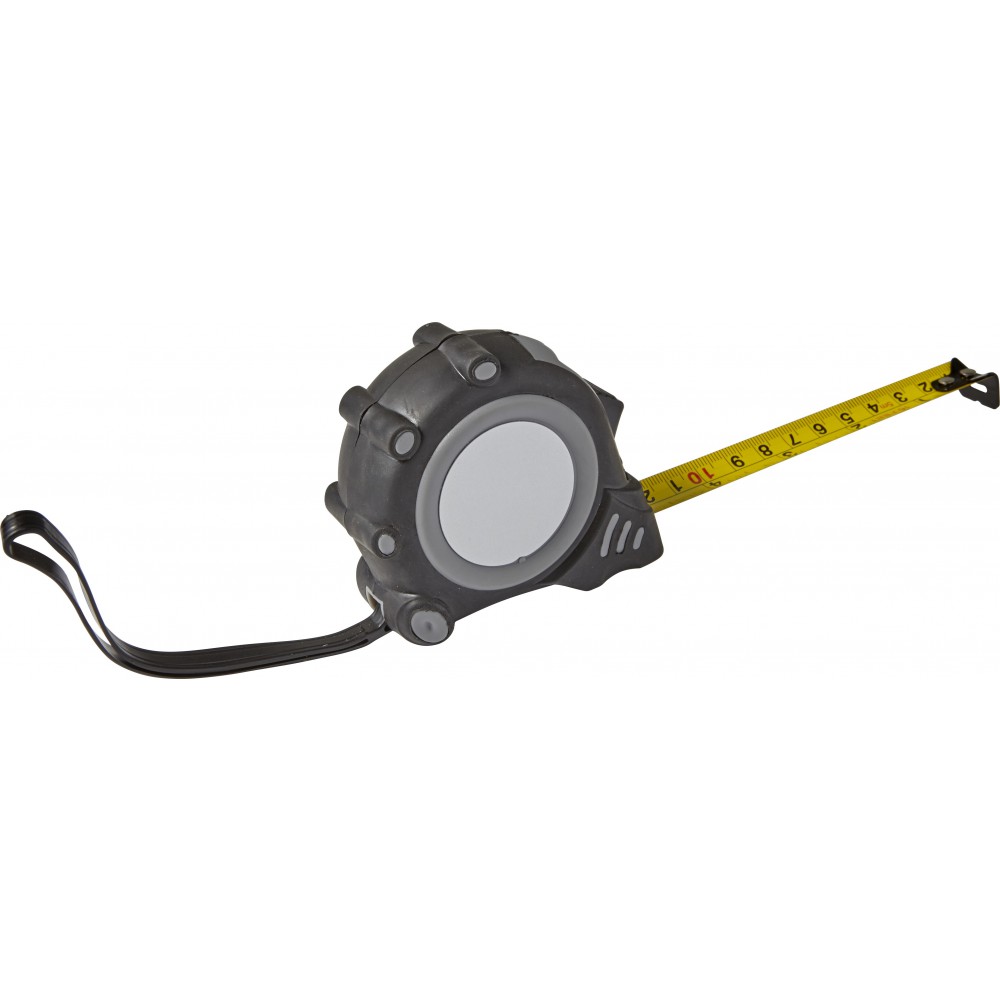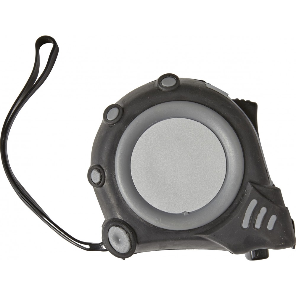 Mérőszalag inch és centiméter beosztással, övcsattal, csuklópánttal. 5 m-es. Emblémázás: Tamponnyomás