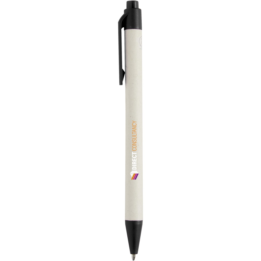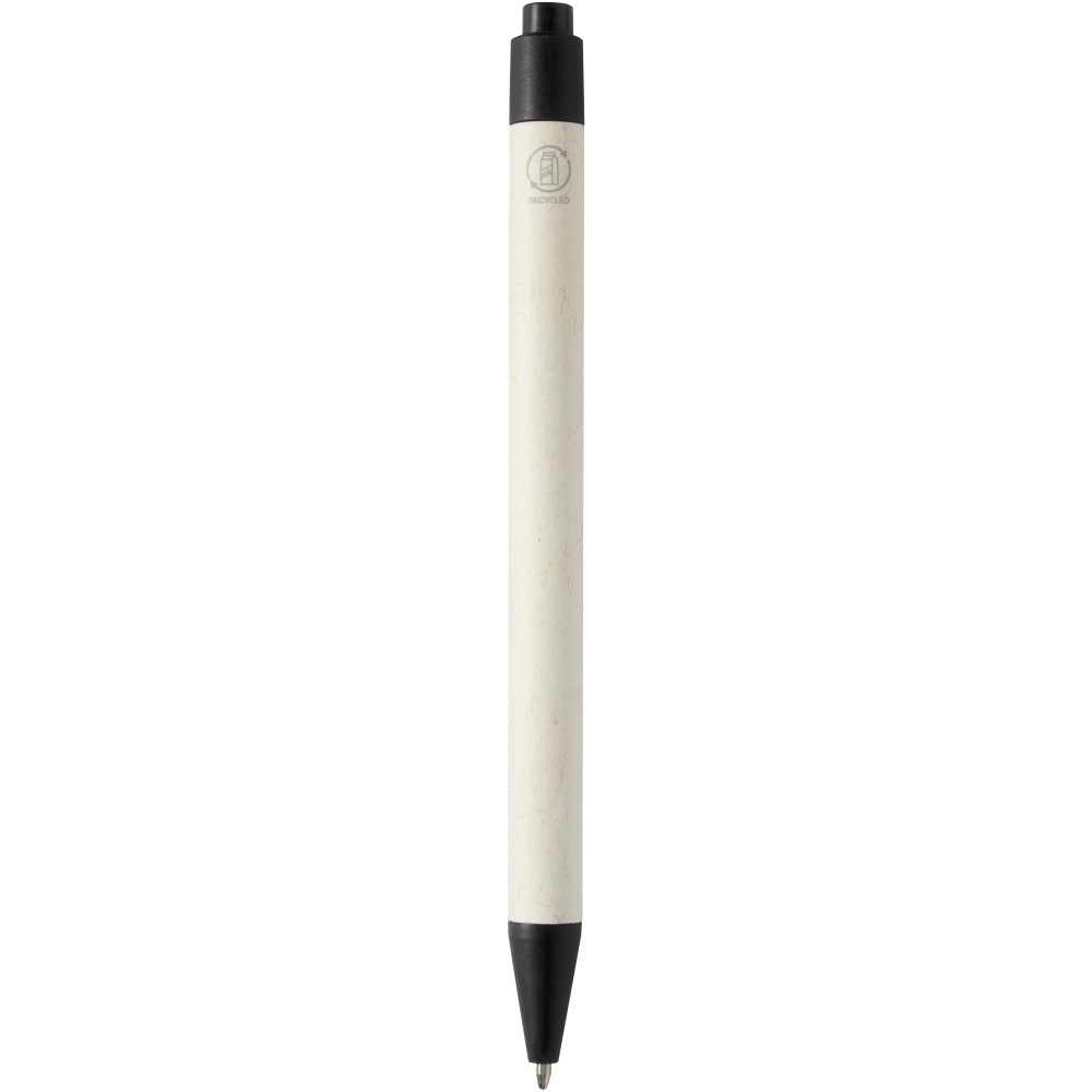 Click action golyóstoll újrahasznosított tejesdobozokból készült testtel (akár 70%). A gomb, a klipsz és a hegy PLA műanyagból készült. A használt tejesdobozokat összegyűjtik, válogatják, feldolgozzák és papírrá alakítják, így a hulladékból hasznos termékek készülnek. Emblémázás: Tamponnyomás