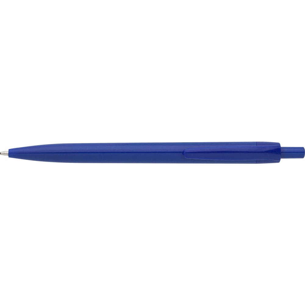 Műanyag golyóstoll kék tollbetéttel. ABS műanyag. Emblémázás: Tamponnyomás, UV nyomtatás