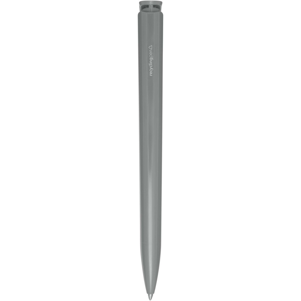 Golyóstoll, amelynek teste és klipsze újrahasznosított műanyagból készült, a hegy pedig rozsdamentes acélból. Kék tollbetéttel. Íráshossz: 3000 méter. Hegyméret: 1,00 mm. Németországban készült. Emblémázás: Tamponnyomás