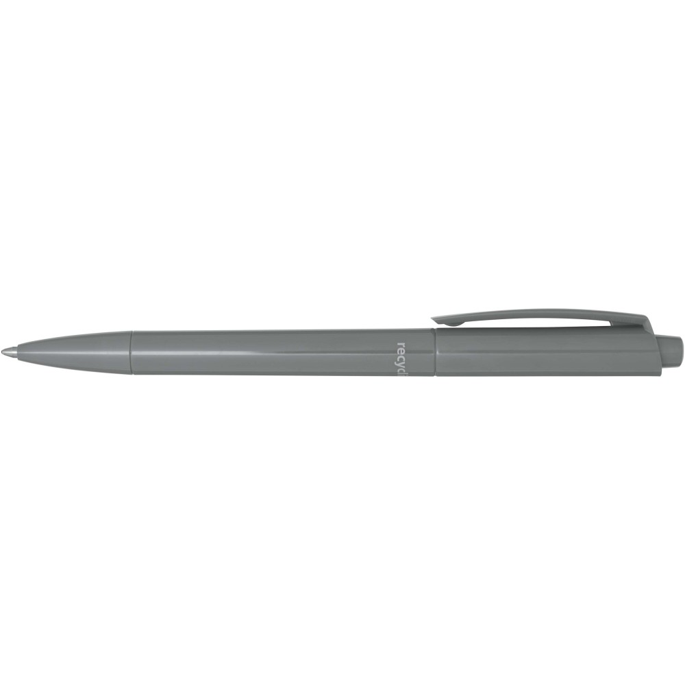 Golyóstoll, amelynek teste és klipsze újrahasznosított műanyagból, hegye pedig rozsdamentes acélból készült. Kék tollbetéttel. Íráshossz: 3000 méter. Hegyméret: 1,00 mm. Németországban készült. Emblémázás: Tamponnyomás