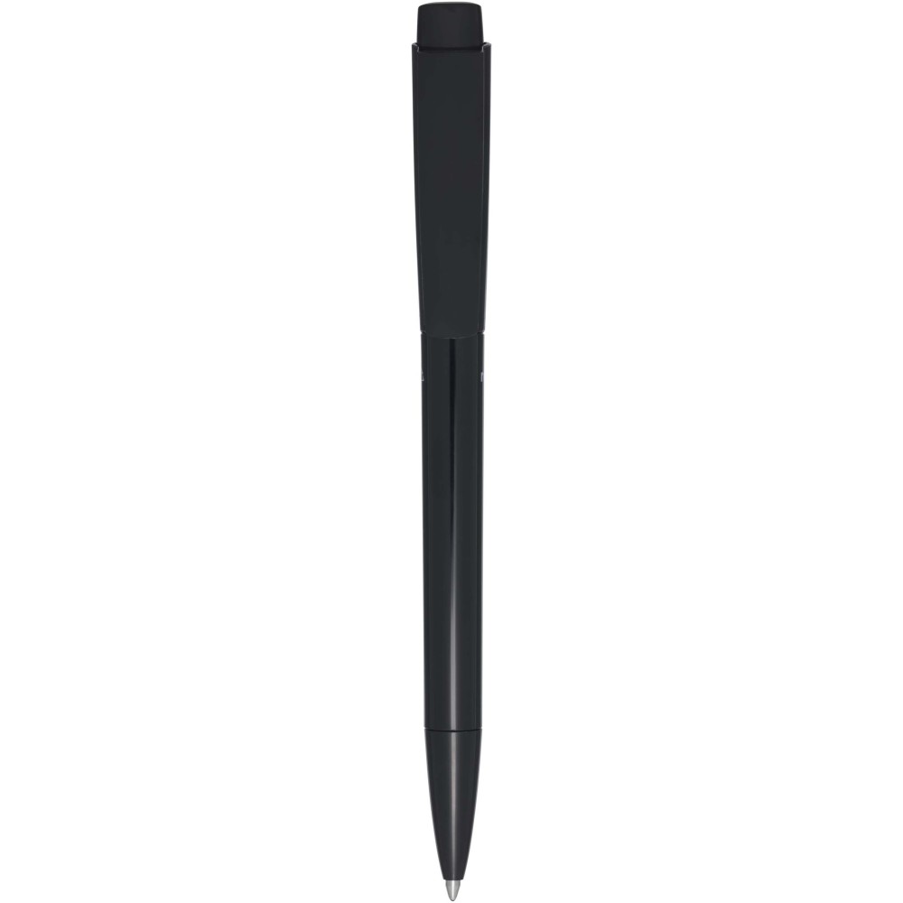 Golyóstoll, amelynek teste és klipsze újrahasznosított műanyagból, hegye pedig rozsdamentes acélból készült. Kék tollbetéttel. Íráshossz: 3000 méter. Hegyméret: 1,00 mm. Németországban készült. Emblémázás: Tamponnyomás