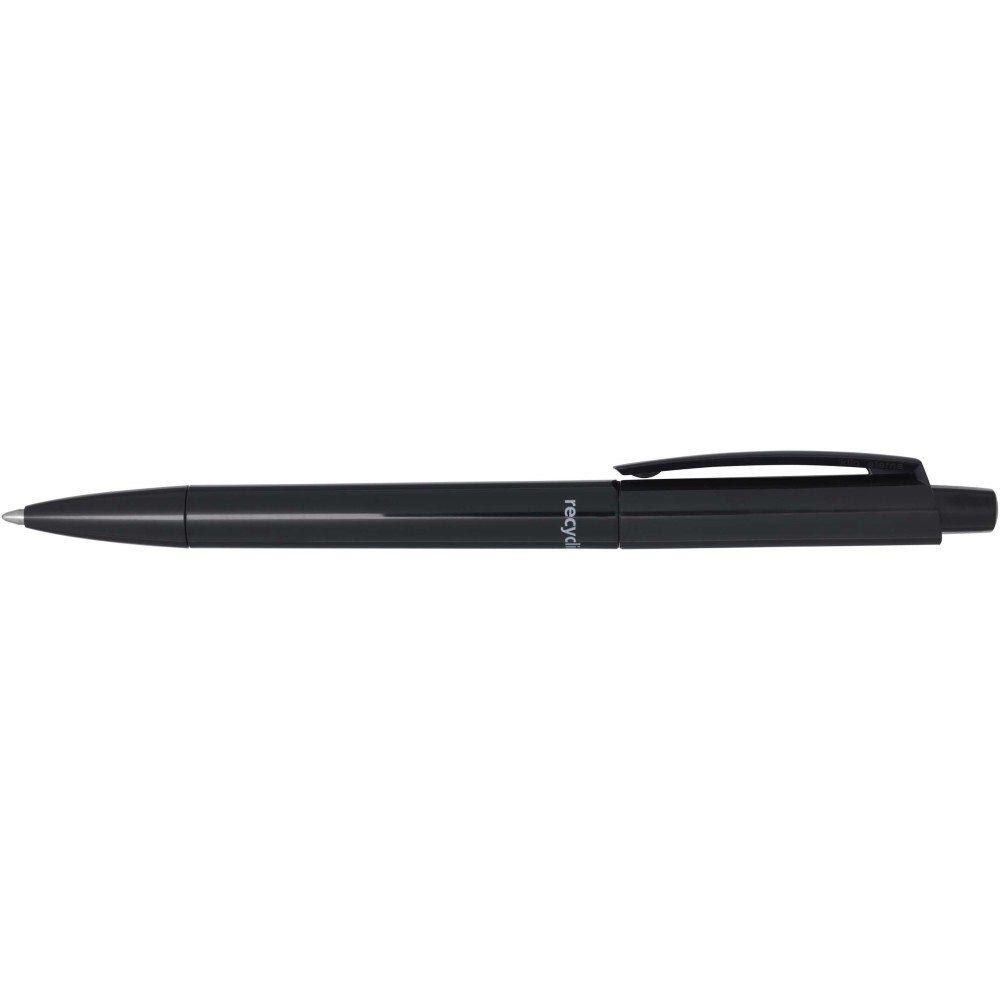 Golyóstoll, amelynek teste és klipsze újrahasznosított műanyagból, hegye pedig rozsdamentes acélból készült. Fekete tollbetéttel. Íráshossz: 3000 méter. Hegyméret: 1,00 mm. Németországban készült. Emblémázás: Tamponnyomás, UV nyomtatás
