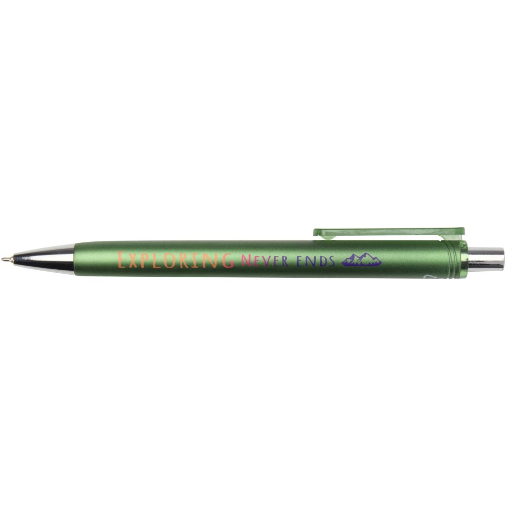A metálbevonatú Feld golyóstoll a mindennapi funkcionalitást ötvözi a letisztult megjelenéssel. Az RCS tanúsítvánnyal rendelkező, újrahasznosított ABS műanyagból készült toll fényes, fémszórt felületet és polírozott króm díszítéseket kapott. A kényelmes és sima írásélményről a könnyen kezelhető nyomógombos szerkezet és a félzselés tollbetét gondoskodik. Fekete tollbetéttel, az íráshossz 500 méter, a hegy mérete 0,7 mm. Emblémázás: Tamponnyomás