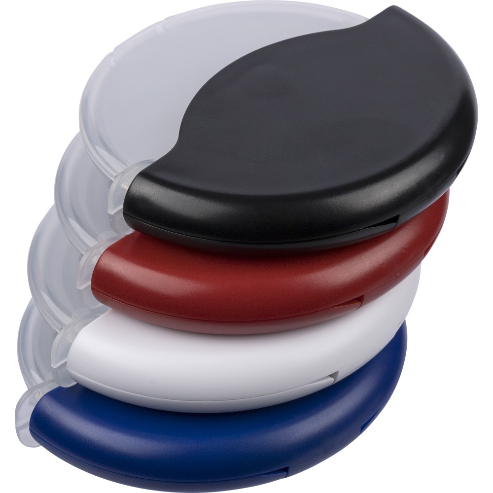 ABS és PP anyagból készült pizzavágó 430-as rozsdamentes acél pengével, kivehető védőborítással, amely könnyen felpattintható a tisztítás és a penge elérése érdekében. Újrahasznosított polietilén tasakba csomagolva. Emblémázás: Tamponnyomás
