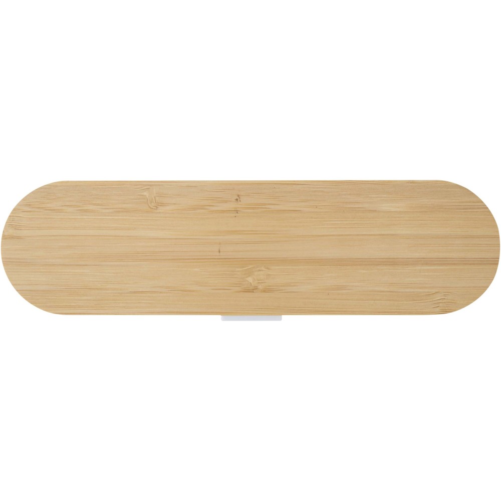Újrafelhasználható evőeszközkészlet bambusz fedéllel, amely tartalmaz egy villát, kést, kanalat, szívószálat és egy szívószál tisztító kefét - ideális megoldást kínál az útközbeni étkezésekhez. Kompakt kialakításának és egyszerű tisztíthatóságának köszönhetően tökéletes kiegészítő uzsonnás dobozok mellé, utazáshoz vagy irodai használatra. Emblémázás: Gravírozás, Tamponnyomás, UV nyomtatás