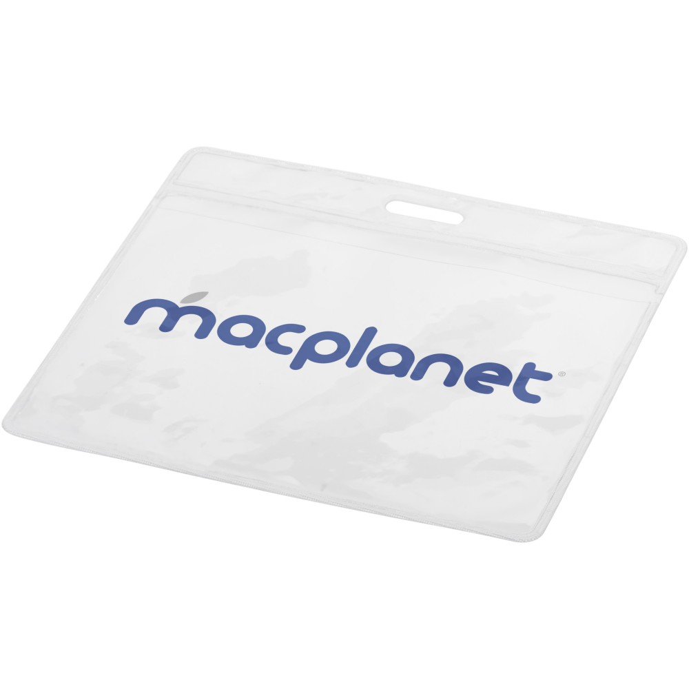 8,8 x 10 cm-es passztartó vinyl tok hátsó behelyezéssel és a felső részen lévő nyílással nyakpánt számára. Behelyezhető kártya: 6,5 cm X 9.5 cm Emblémázás: Tamponnyomás