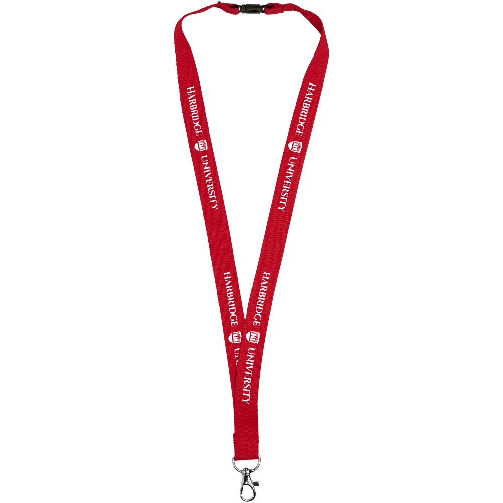 Nyakpánt biztonsági kioldóval. 100% pamut. Kiváló ár-érték arányt és lenyűgöző logóméreteket kínál, ha zöld megoldást keres. Kiváló minőségű karabinerrel, ideális névjegy-, ID- vagy kulcsok tartására. Emblémázás: Szitanyomás