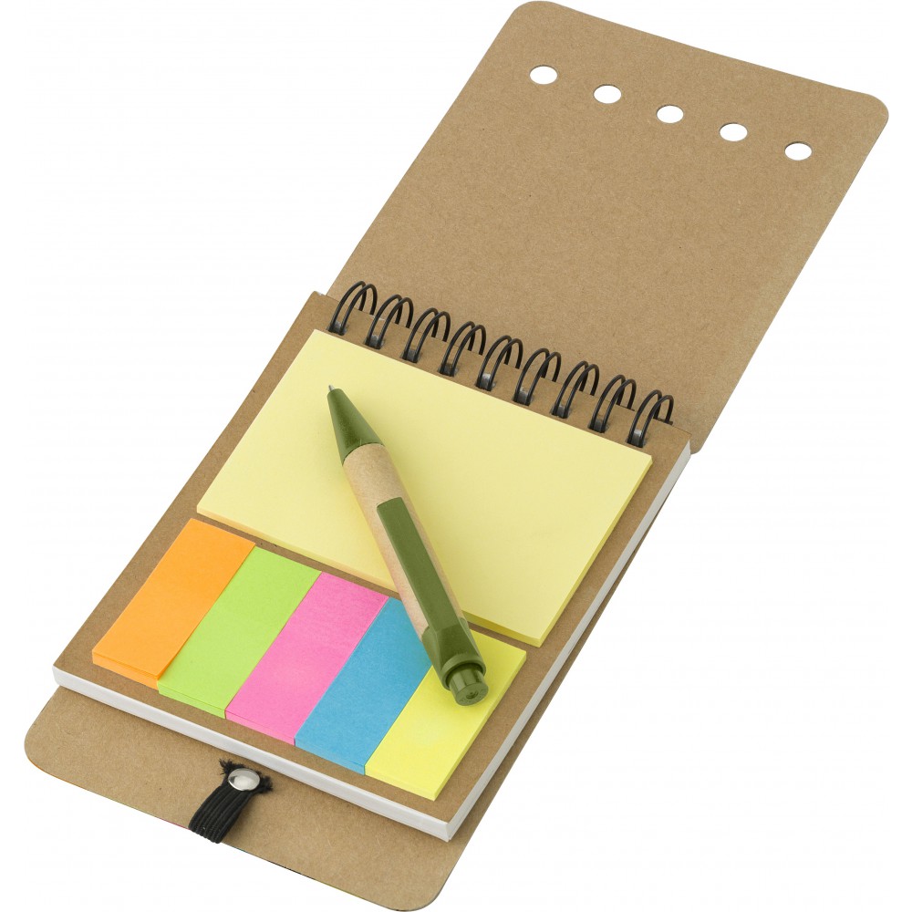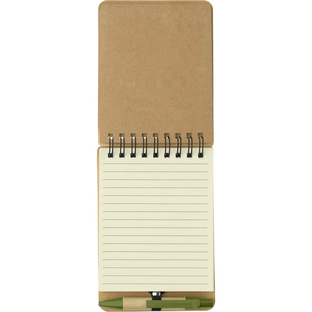 Spirálos jegyzettömbkészlet tollal, zöld/natúr