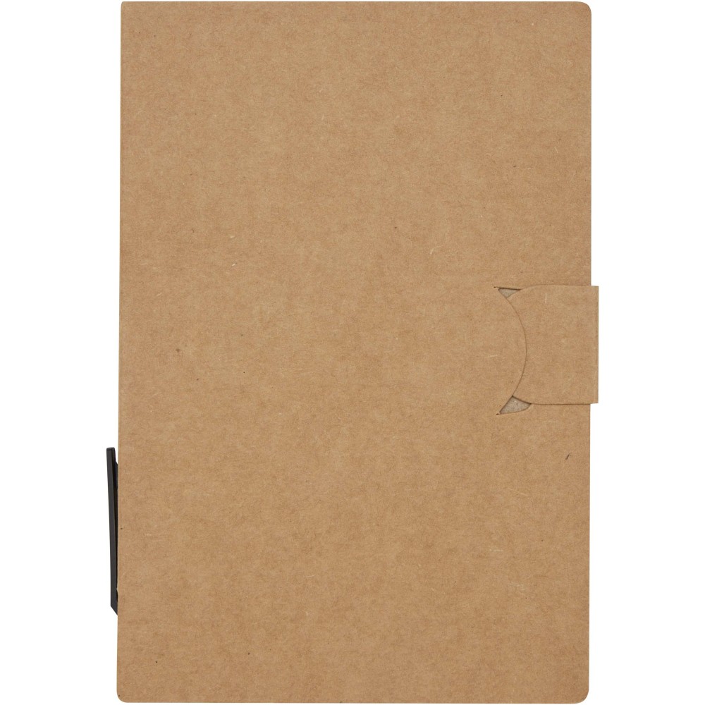 A Swift öntapadós jegyzettömb és golyóstoll praktikus irodai kiegészítő, amely 25 lap fehér, 70 g/m2-es, sima lapot tartalmaz (14,1 x 7,8 cm). Emellett kis (4,5 x 1,2 cm) és nagy (7,5 x 7,5 cm) színes öntapadós jegyzetek is találhatók benne. A golyóstoll teste újrahasznosított papírból készült. Tinta színe: fekete. Íráshossz: 500 méter. Tollhegy mérete: 1,00 mm. Emblémázás: Tamponnyomás