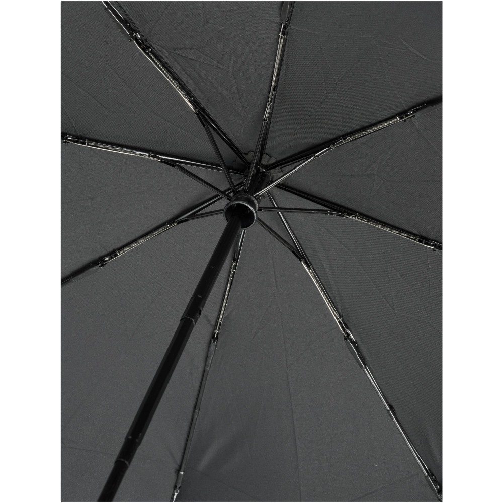 Összecsukható 21 -es esernyő. Erős fém váz, üvegszálas szerkezet. Fa nyele és az újrahasznosított RPET alapanyag miatt jó választás azok számára, akiknek fontos a fenntartható szemlélet. Emblémázás: Szitanyomás