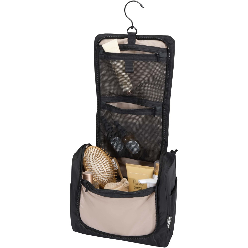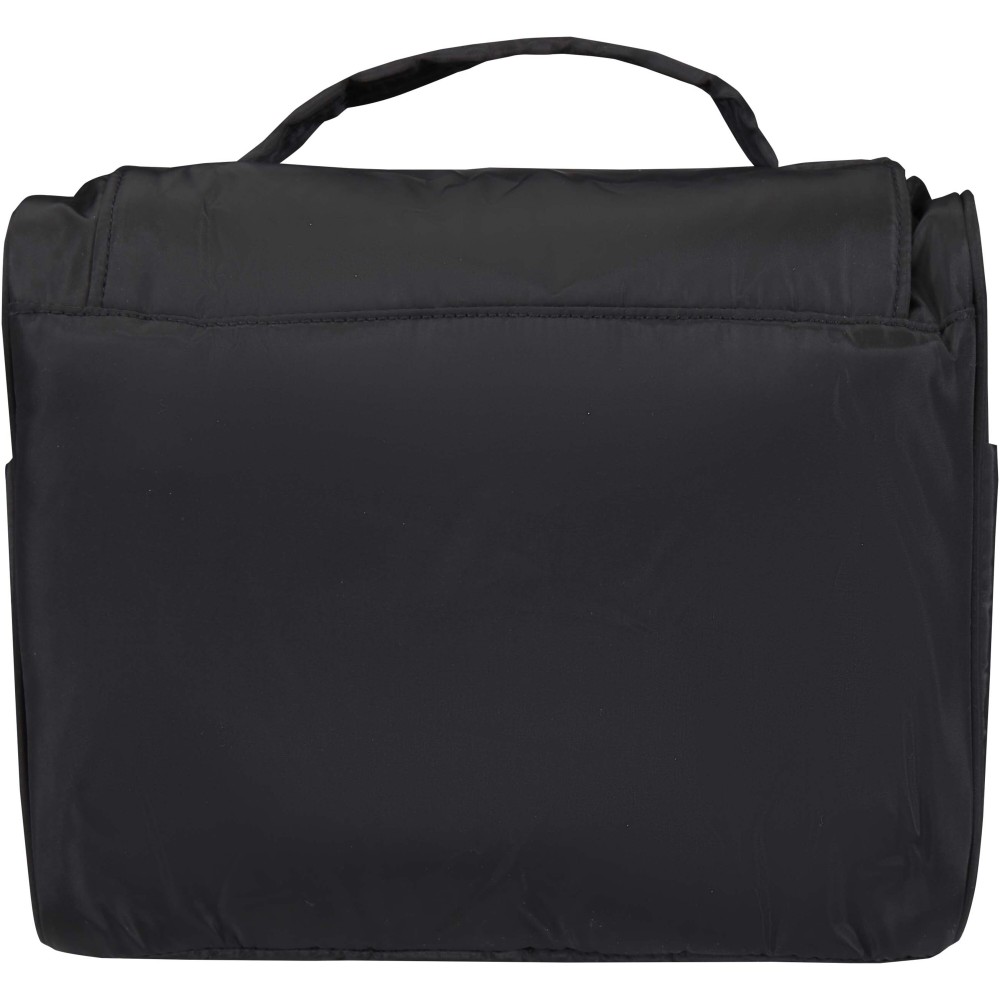 A Puffer felakasztható piperetáska GRS tanúsítvánnyal rendelkező újrahasznosított alapanyagokból készül, egyedi kialakítással a mindennapi kényelem érdekében. A 8 literes neszesszer tágas fő rekesszel rendelkezik, hat belső zsebbel, két külső oldalzsebbel, valamint egy praktikus akasztóval, amely ajtóra vagy törölközőtartóra rögzíthető. A párnázott fogantyú megkönnyíti a hordozást, míg a jellegzetes puffer stílusú párnázás egyszerre biztosít védelmet és esztétikus megjelenést. Könnyű és vízlepergető kialakításának köszönhetően utazás közben is rendezetten és biztonságosan tartja a legfontosabb tisztálkodási kellékeket. Emblémázás: Szitanyomás