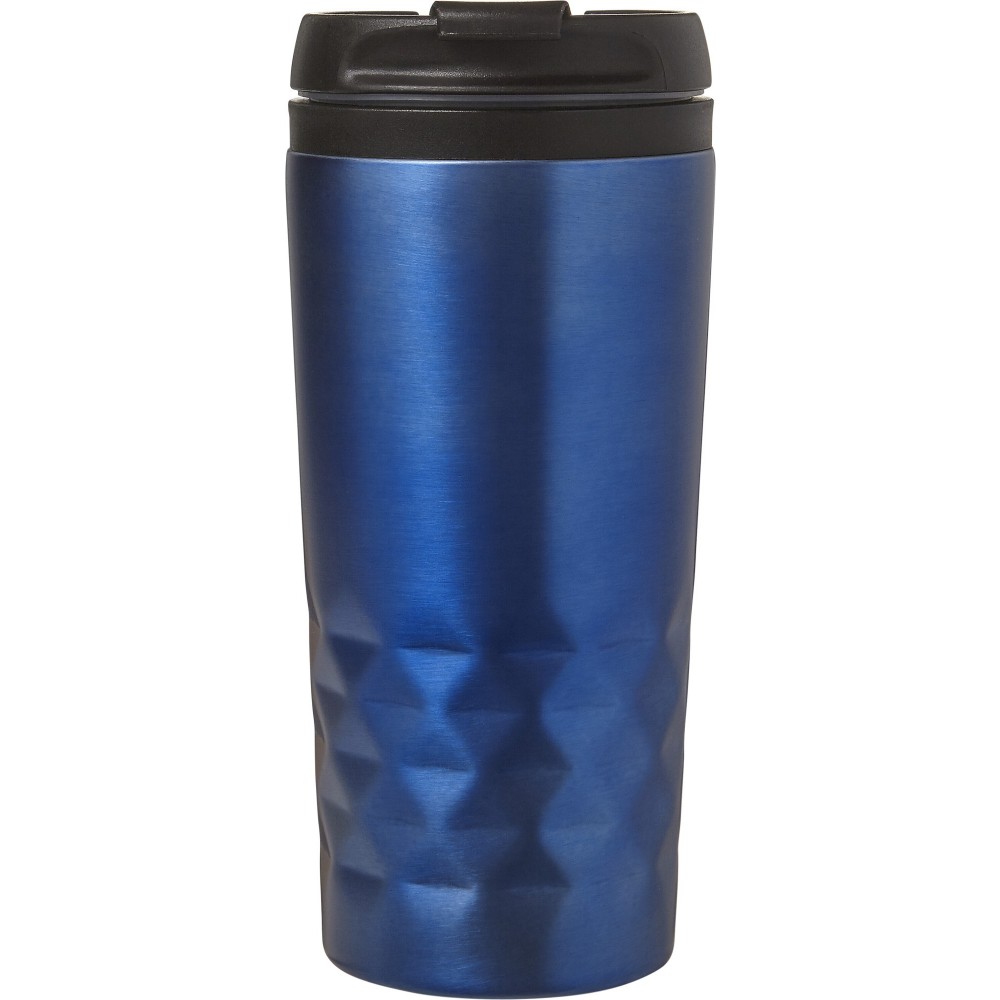 Duplafalú fedeles pohár. 300 ml. Rozsdamentes acél és BPA-mentes műanyag. Nem szivárgásmentes és nem mosogatógépálló termék. Emblémázás: Gravírozás, Körszita, Tamponnyomás
