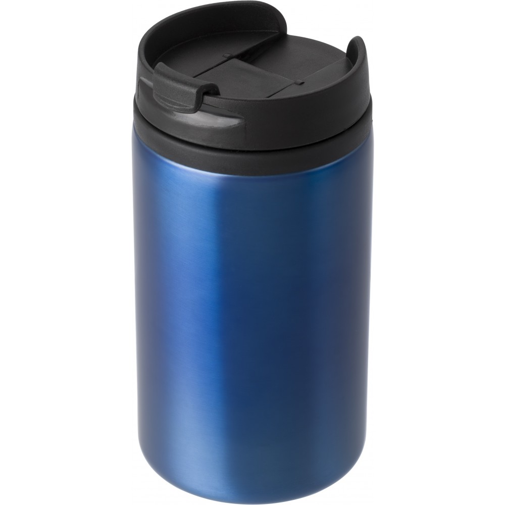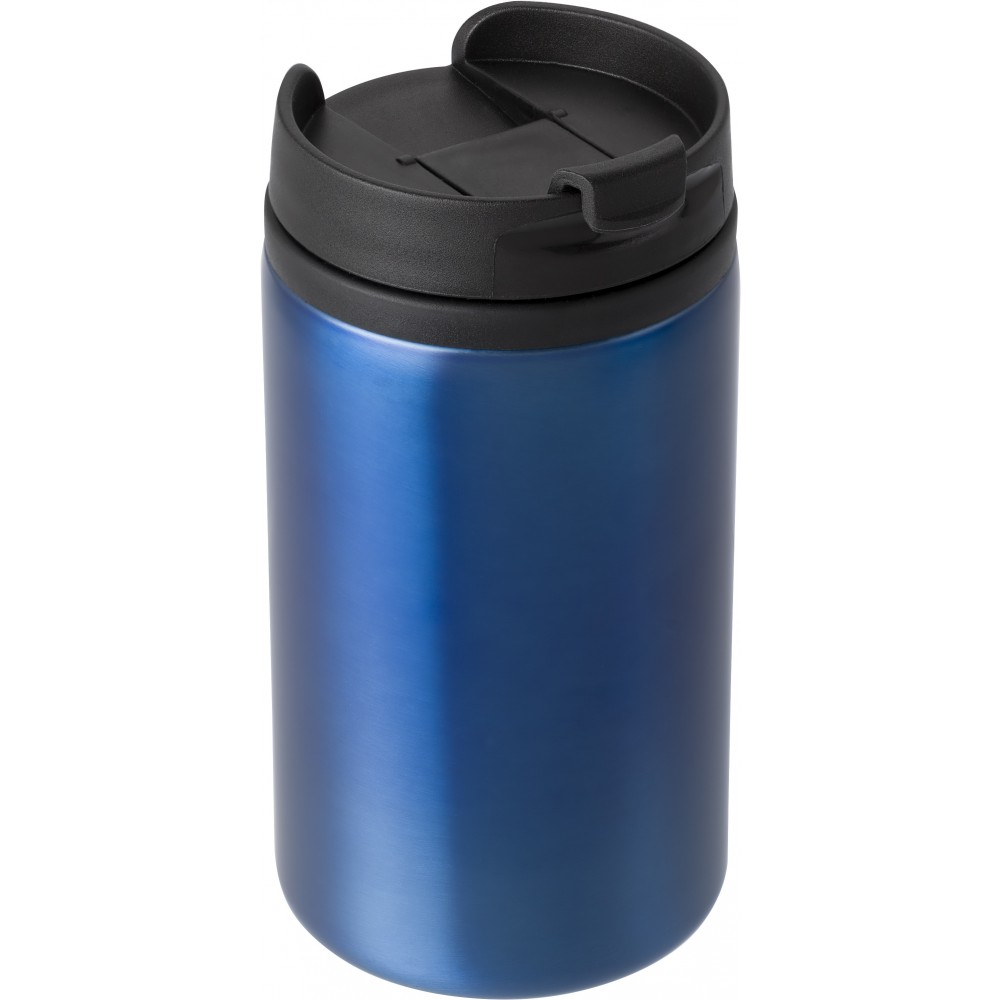 Duplafalú termoszpohár. A külső fal rozsdamentes acél, a belső fal műanyag. A csavaros fedél szivárgásmentes. A pohár alja csúszásgátlóval van ellátva. 300 ml. BPA-mentes műanyag. Nem mosogatógépálló termék. Emblémázás: Gravírozás, Körszita, Tamponnyomás