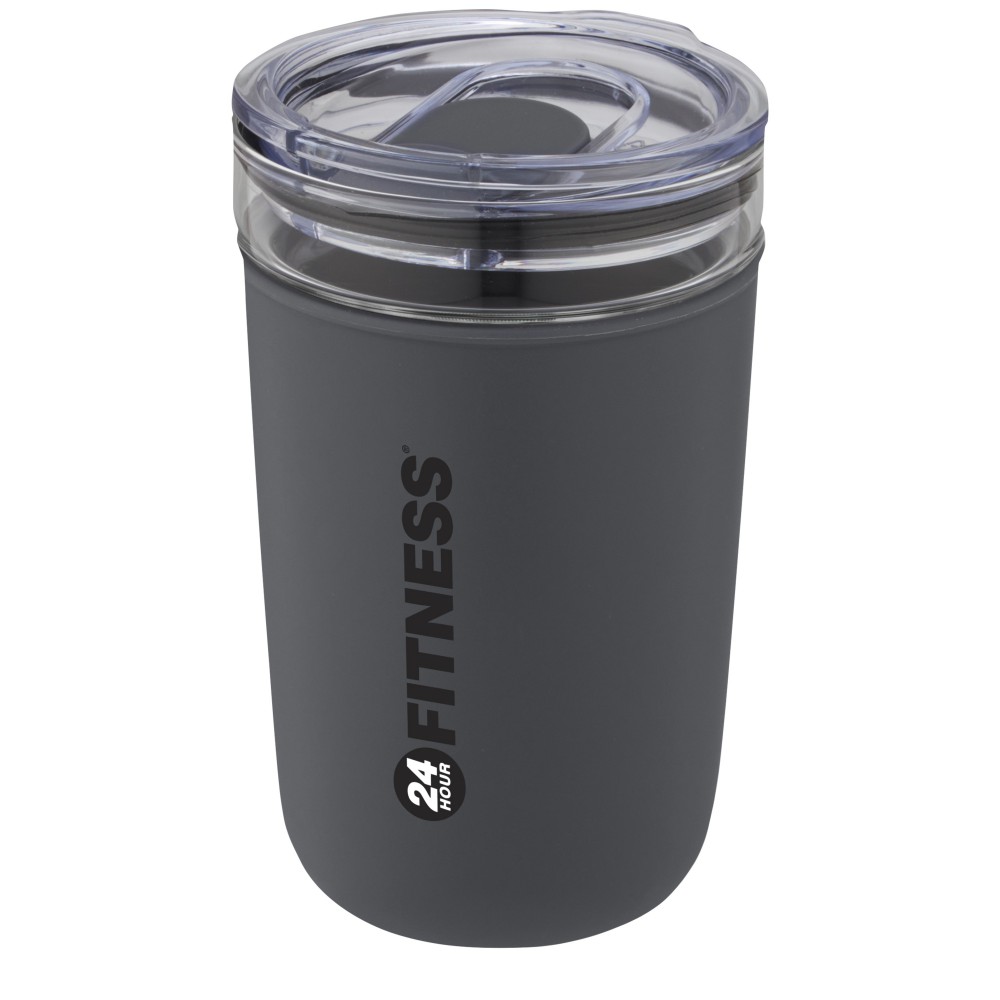 Újrahasznosított műanyag tokkal védett üvegpohár. A pohár 100%-ban tartós boroszilikát üvegből készült, amely megőrzi az ital frissességét, és nem tartalmaz semmilyen káros vegyszert. BPA-mentes, a német élelmiszerbiztonsági törvény (LFGB) szerint tesztelt és jóváhagyott. Ftaláttartalomra tesztelve és jóváhagyva a REACH előírásai szerint. A pohár a legtöbb kávéfőző alá illeszkedik. Nem szivárgásmentes. Szénsavas italokkal nem használható. Mosogatógépben mosható, de mikrohullámú sütőben történő melegítésre nem alkalmas. Űrtartalom: 420 ml. Újrahasznosított karton díszdobozban. Emblémázás: Bögredekor, Tamponnyomás