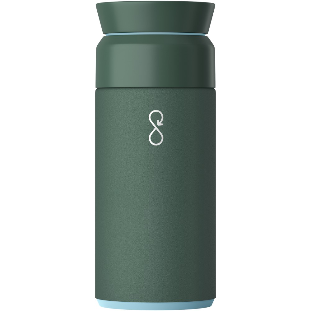 A 350 ml-es Ocean Bottle nagyszerű választás forró italok számára utazás során. A palack újrahasznosított rozsdamentes acélt és újrahasznosított óceáni műanyagot tartalmaz. Egy palack gyártásához 1000 műanyag palackot gyűjtöttek össze, így javítva a tengerparti közösségek megélhetését. NFC Smart Chip-pel rendelkezik, hogy több műanyag gyűjtését támogassa minden utántöltéskor. Az innovatív 360 fokos fedél lehetővé teszi az aromák cirkulálását, az újrahasznosított rozsdamentes acél kettős hőszigetelése pedig akár hat órán keresztül is melegen tartja az italokat. Emblémázás: Gravírozás, Tamponnyomás