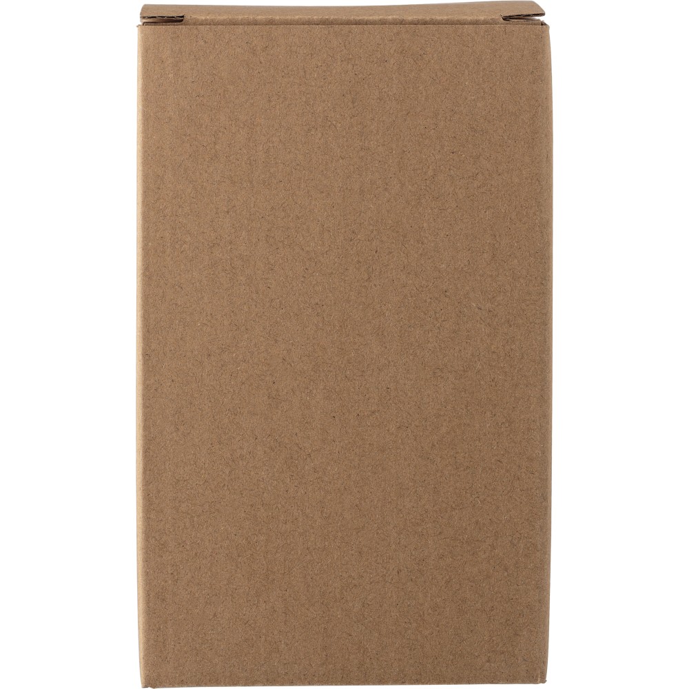 Rozsdamentes acélból és PP-ből készült utazópohár (350 ml). A PP fedél szilikon zárógyűrűvel rendelkezik, tetején lehajtható záróelemmel. Egyedileg csomagolva barna kartondobozban érkezik. Emblémázás: Tamponnyomás