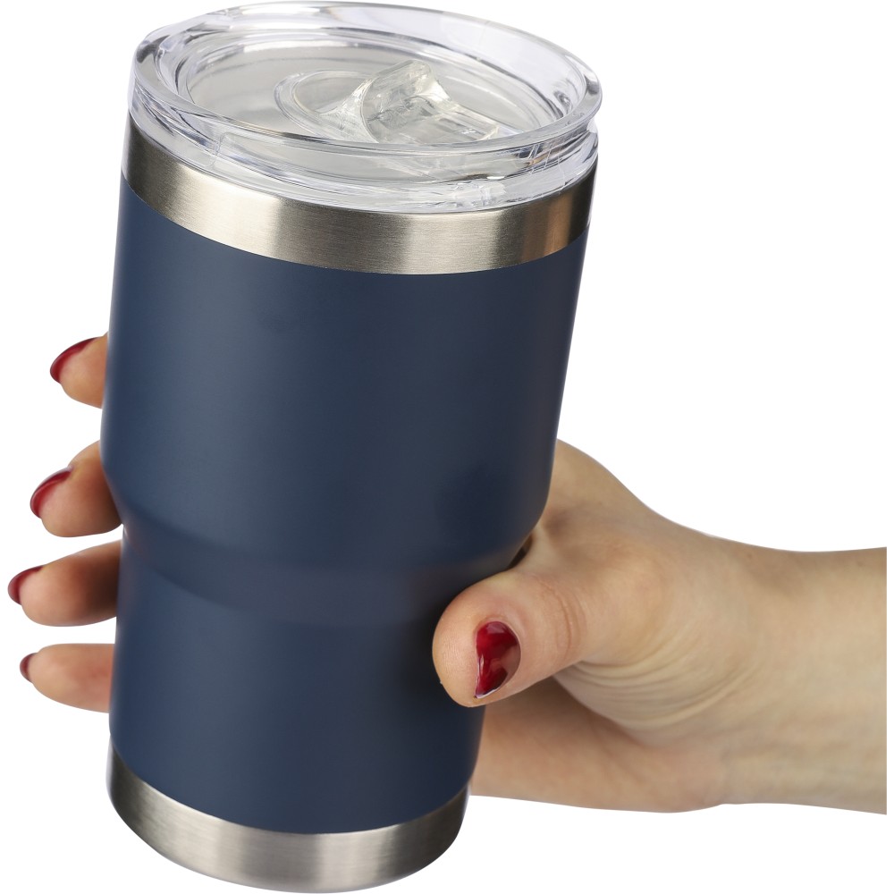 Újrahasznosított rozsdamentes acél kávésbögre, 350 ml. A belső kerámia bevonattal rendelkezik, a külső 201-es rozsdamentes acél, a belső fal pedig 304-es rozsdamentes acél. A bögrén gravírozott újrahasznosított logó található. Csomagolása barna papírdoboz. Emblémázás: Bögredekor, Gravírozás