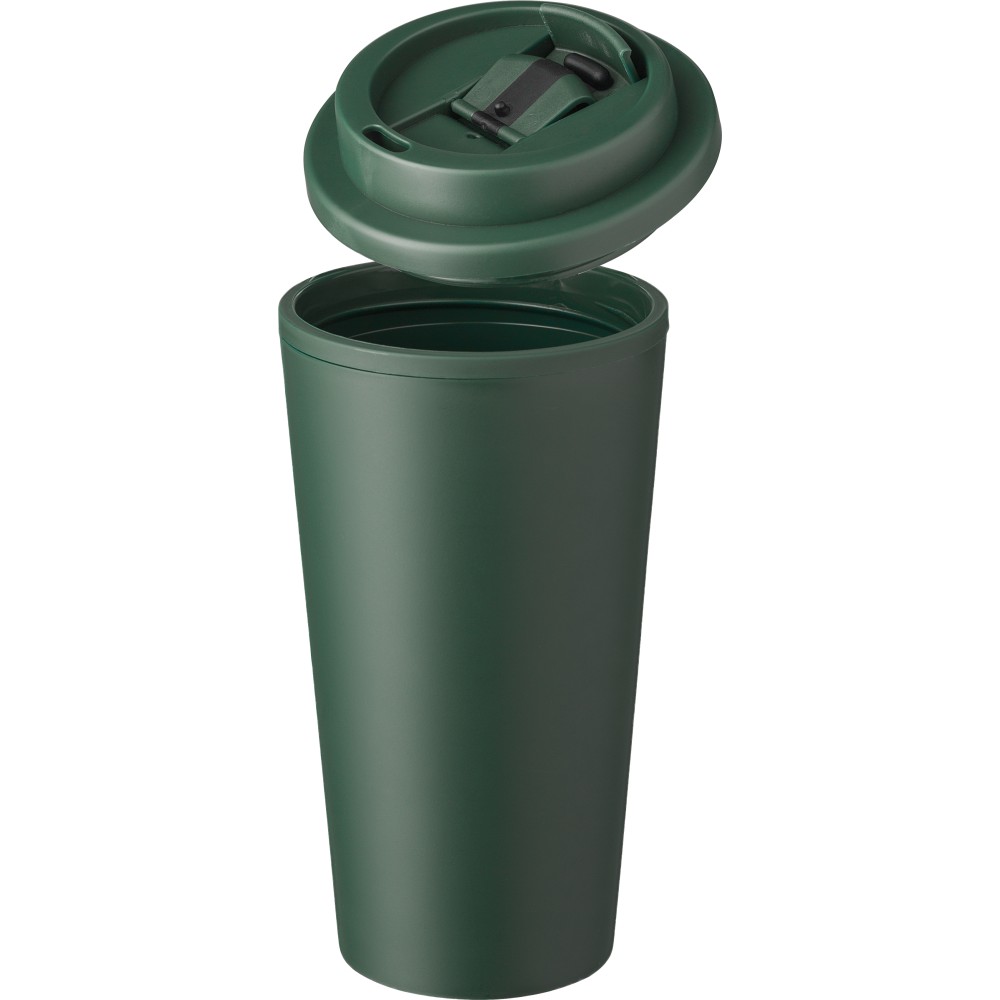 Kávéspohár csavaros fedéllel és felpattintható ivórésszel. Űrtartalom: 475 ml. PP műanyag. Emblémázás: Tamponnyomás