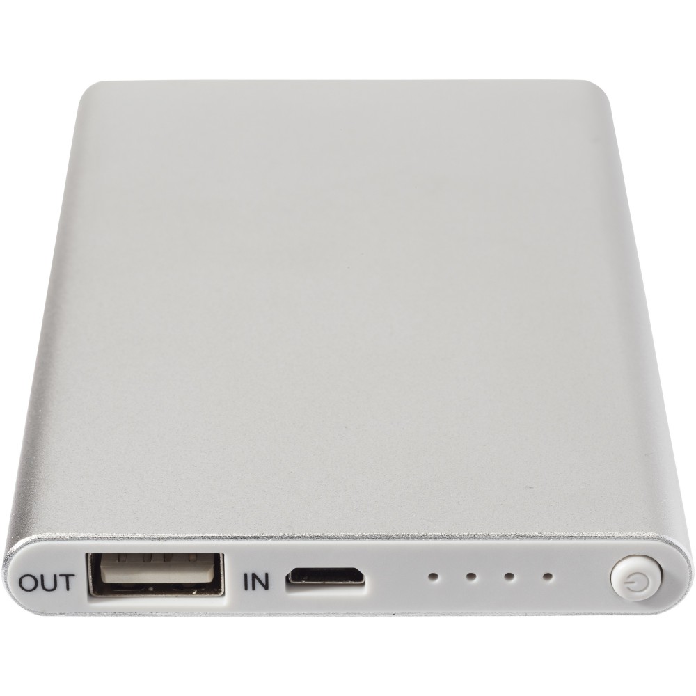 Pep powerbank 4000 mAh kapacitással, A lítium polimer akkumulátorral. Vékony, könnyű modell. A LED jelzőfény töltés közben jelzi a töltöttségi szintet, a kijelző pedig mutatja a maradék energiaszintet. Bemenet 5V/1A, kimenet 5V/1A. A USB / Micro-USB töltőkábelt tartalmazza. Csomagolása fehér doboz. Veszélyes áru, csomagban nem küldhető. Emblémázás: Gravírozás, Tamponnyomás, UV nyomtatás