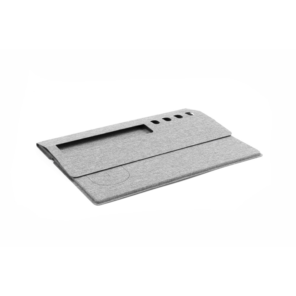 Alakítsa át munkaterületét az Evopad segítségével! Ez az újrahasznosított PET-palackokból készült többfunkciós eszköz vezeték nélküli töltőt, egérpadot, telefontartót és tolltartót kombinál egyetlen kompakt kialakításban. Akár az irodában, akár otthon, akár egy kávézóban tartózkodik, az Evopad rendszerezetten, rendezetten és teljesen feltöltve tartja a munkahelyét, bárhová is megy. Emblémázás: Szitanyomás