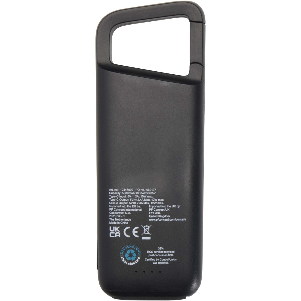 Maradj feltöltve útközben az Alkes 5000 mAh powerbank segítségével, amely újrahasznosított műanyagból készült. Kifejezetten kültéri használatra tervezve beépített karabinerrel és vízálló kialakítással (IPX5) rendelkezik, amely ellenáll az alacsony nyomású vízsugárnak, például esőnek. A USB portokat szilikon fedél védi, míg a LED jelző mutatja a töltés állapotát. Ideális túrázáshoz, kempingezéshez vagy mindennapi utazáshoz. Emblémázás: Matricázás, Tamponnyomás, UV nyomtatás
