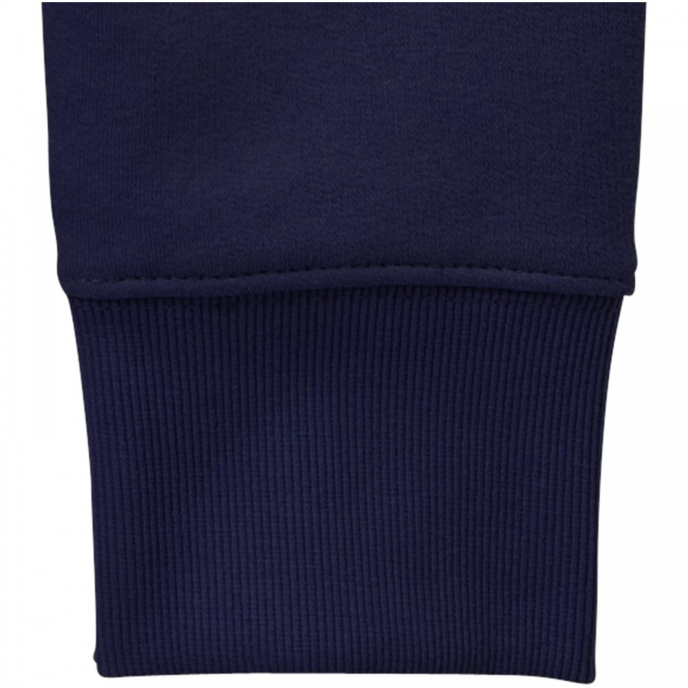 Normál szabásvonal. 2x2-es bordás ujj- és derékpasszé. 2x2-es bordás V-betét a nyaknál. Szatén szalagerősítés válltól vállig. Belül puha, bolyhos felület. Hátul tónusos logónyomat.80% pamut és 20% poliészter, belül bolyhos, kötött anyag. 300 g/m2. Emblémázás: Hímzés, Szitanyomás