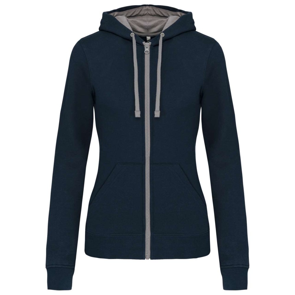 Kariban Contrast női kapucnis pulóver, Navy/Fine Grey