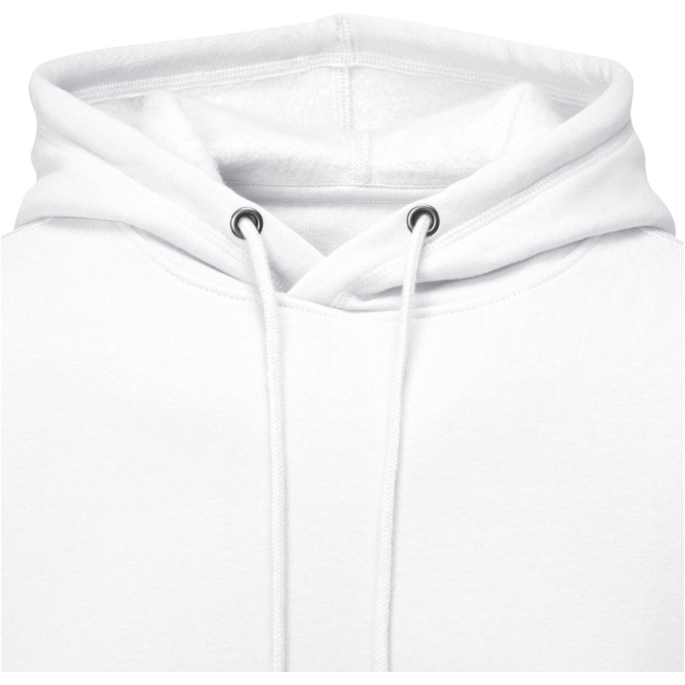 Belső emblémázási lehetőség. Letéphető, kivágható címke. Zsinór a kapucniban. Kenguru zseb. Lapos kötésű bordás alsó szegély. Lapos kötésű bordás mandzsetta. Bolyhos belső felület. Saját anyagából készült nyakszalag. Kötött anyag 50% pamut és 50% poliészter, 240 g/m2. Emblémázás: Hímzés, Szitanyomás