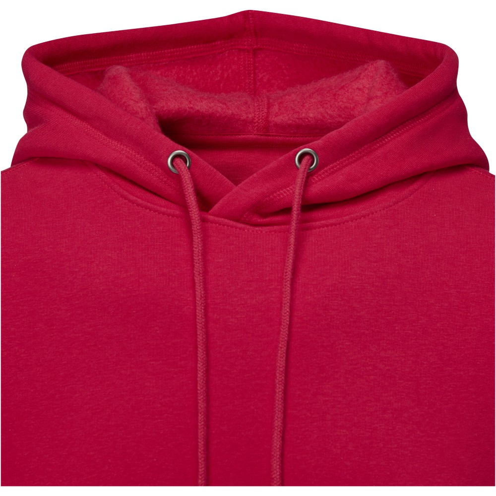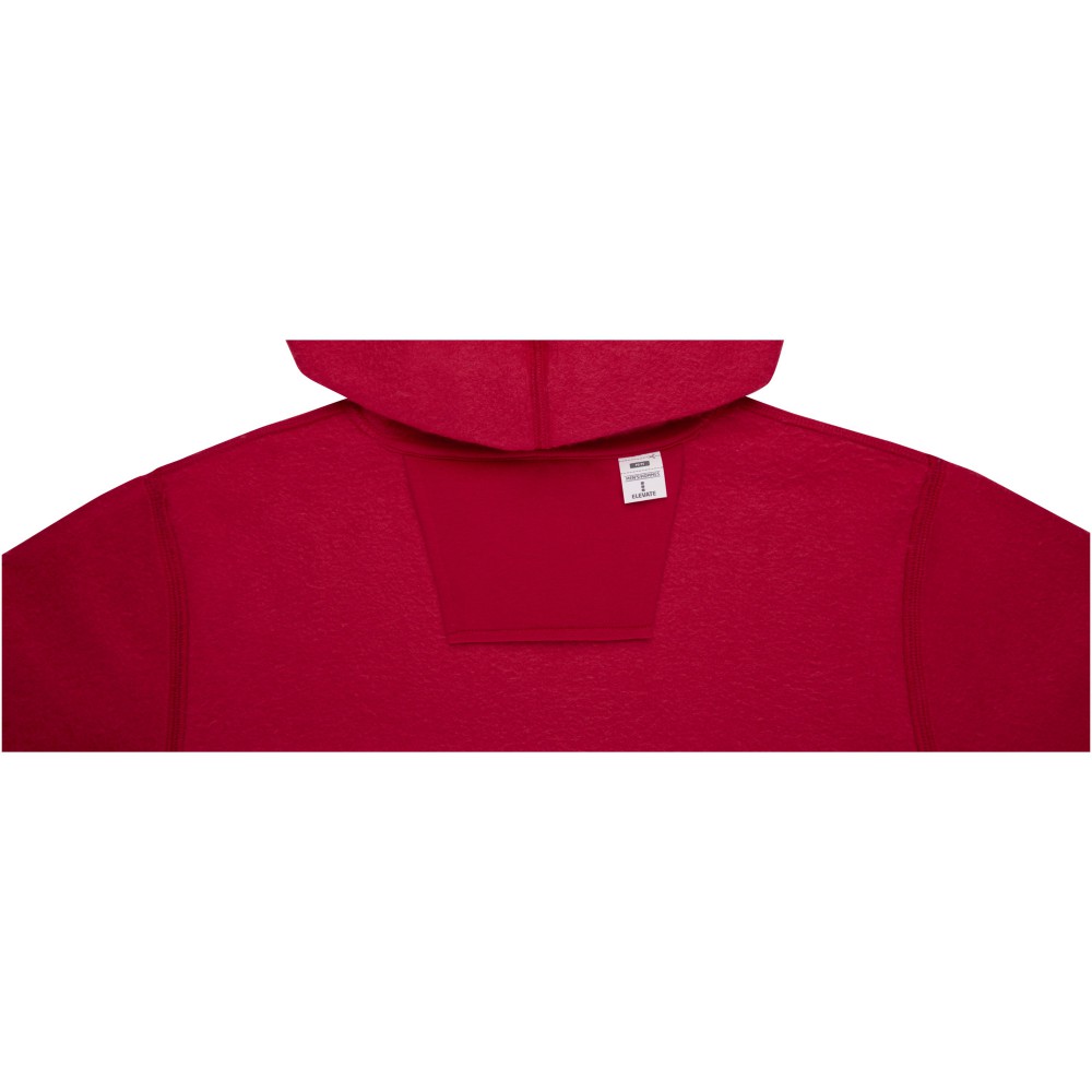 Belső emblémázási lehetőség. Letéphető, kivágható címke. Zsinór a kapucniban. Kenguru zseb. Lapos kötésű bordás alsó szegély. Lapos kötésű bordás mandzsetta. Bolyhos belső felület. Saját anyagából készült nyakszalag. Kötött anyag 50% pamut és 50% poliészter, 240 g/m2. Emblémázás: Hímzés, Szitanyomás