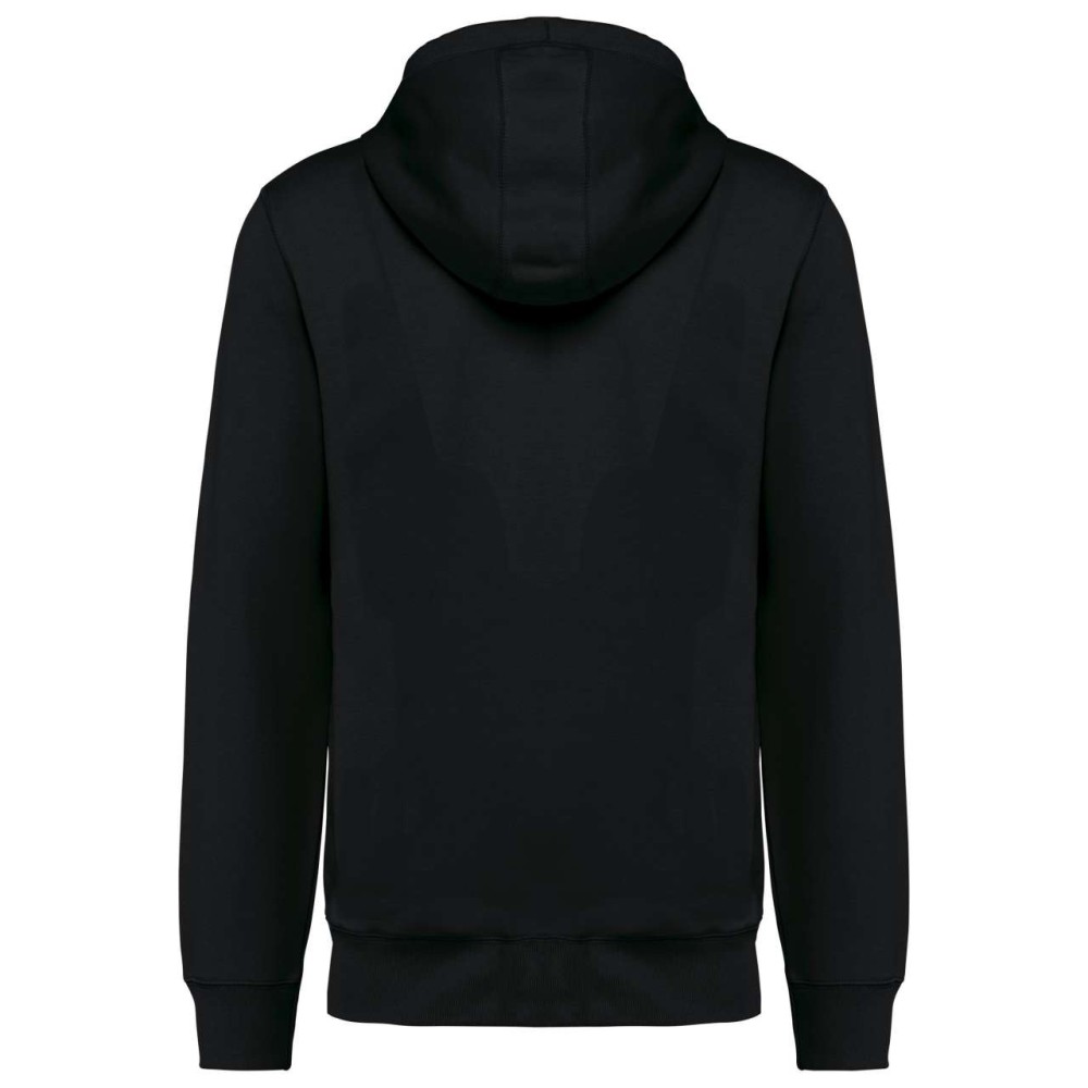 80% bio pamut / 20% újrahasznosított poliészter. Oxford szürke 75% bio pamut / 25% újrahasznosított poliészter. Francia frottír LST (Low Shrinkage Terry). Szövet: enzimes mosás. Karcsúsított szabás. 2 csíkos elülső zseb. Fém cipzár. Bordázott kézelő, bordázott szegély és bélelt kapucni. Fémvégű húzózsinórral. Félhold alakú kivitel a nyakkivágásnál, hogy megkönnyítse a díszítéshez való hozzáférést belülről. Twill szalaggal erősített nyak. Nincs márkacímke a nyakon, csak méretcímke a dekorációhoz való könnyebb hozzáférés érdekében. OEKO-TEX N CQ1007/7 STANDARD 100 tanúsítvánnyal rendelkezik. IFTH. Emblémázás: Hímzés, Szitanyomás