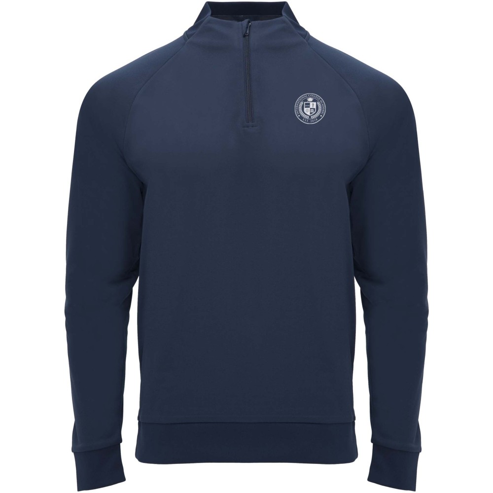 Technikai anyag. Raglán ujjak. Belül bolyhos anyag. Negyedcipzár azonos színű megerősített, fedett öltésekkel. Bordázott nyak-, ujj- és aljpasszé. Eltávolítható címke. Emblémázás: Hímzés, Szitanyomás