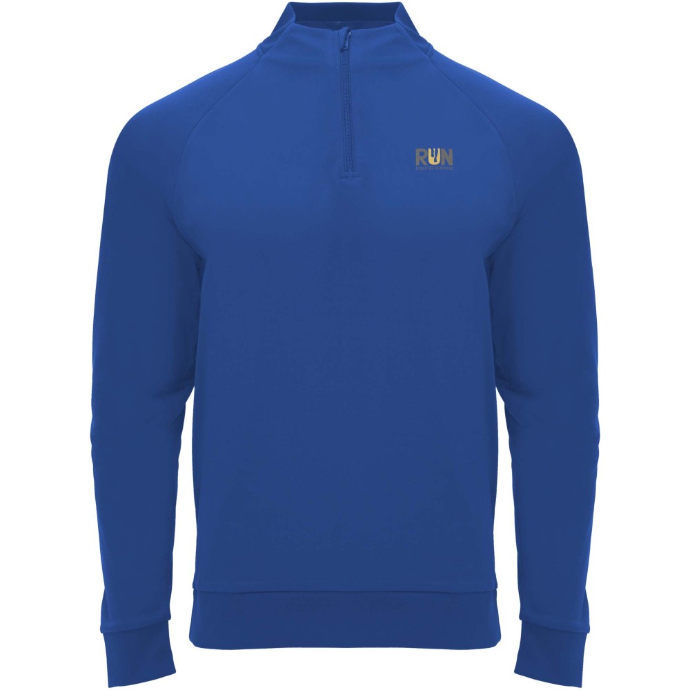 Technikai anyag. Raglán ujjak. Belül bolyhos anyag. Negyedcipzár azonos színű megerősített, fedett öltésekkel. Bordázott nyak-, ujj- és aljpasszé. Eltávolítható címke. Emblémázás: Hímzés, Szitanyomás